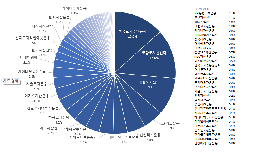 | KOREIT(Korea Real Estate Invesmtment Trusts) | 20 | 3,961.3 | 3.2% |