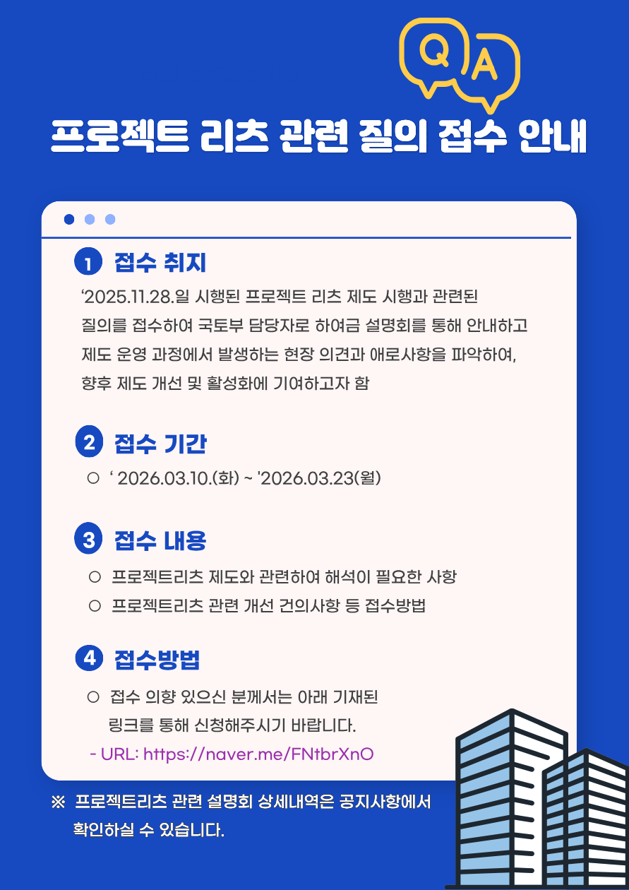 ㅇ‘2025.11.28.일 시행된 프로젝트 리츠와 관련된 궁금한 사항에 대해 국토교통부에서