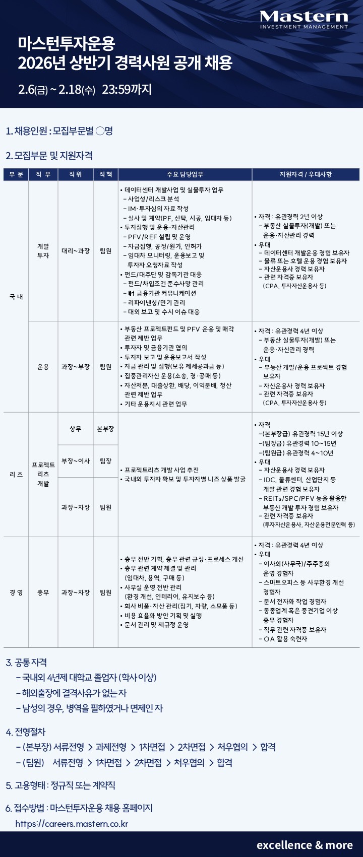 [마스턴투자운용] 2026년 상반기 경력사원 공개채용(~2/18)