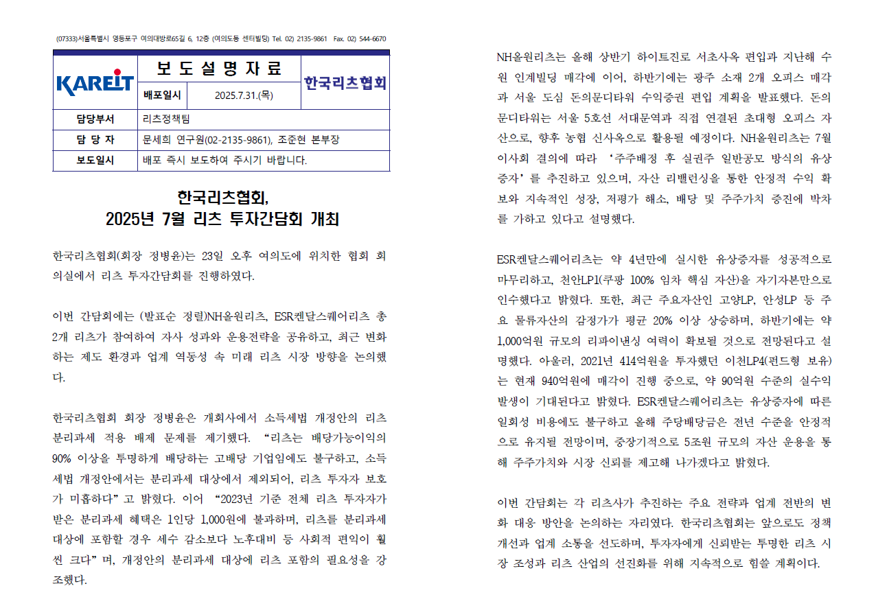 2025.7.31-[보도자료] 한국리츠협회, 2025년 7월 리츠 투자간담회 개최(사진有).pdf (3.2 MB)