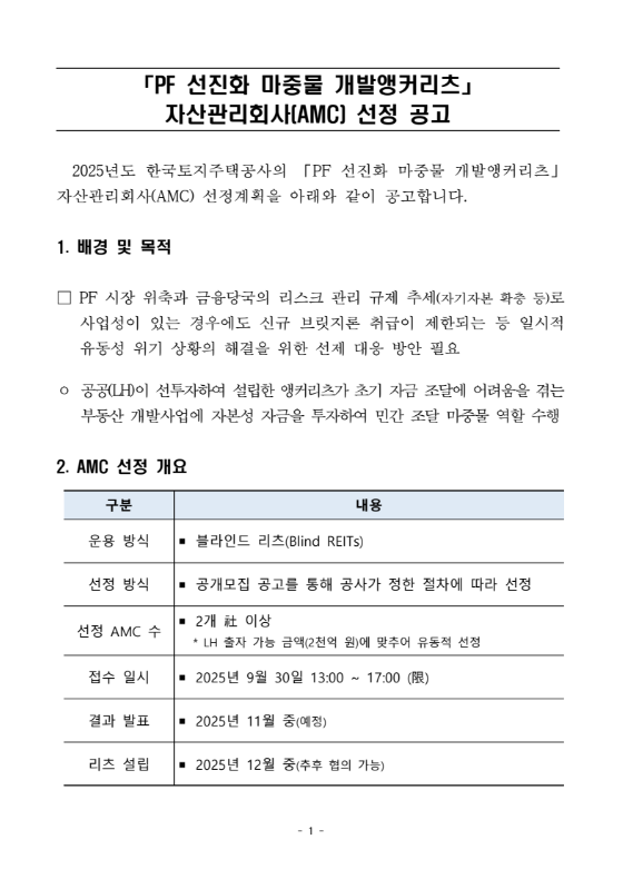 [LH공모 안내] PF선진화 마중물 개발앵커리츠 자산관리회사(AMC) 공모